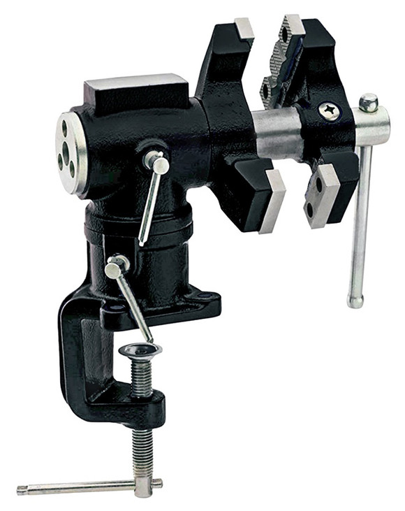 - 360° Swivel Base: Jaws rotate on 2 axis as the entire assembly rotates 360° on the base and flips on a center axis to access either sets of jaws. (Exclusive)
