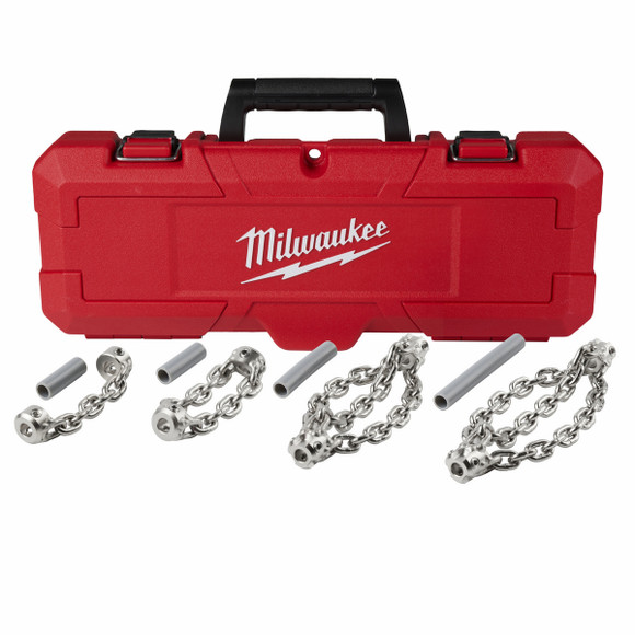 The Milwaukee 1-1/2" – 4" Standard Chain Knocker Kit for the M18 FUEL™ HIGH SPEED CHAIN SNAKE KIT w ONE KEY delivers a wall-to-wall clean that can tackle grease and soft blockages. The standard chain knockers are best used in PVC, clay, or fragile pipes. These steel chain knockers feature durable construction to tackle tough clogs in 1-1/2" – 4" lines. Featuring stainless steel set screws for corrosion resistance.