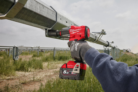 The M18 FUEL™ Controlled Mid-Torque Impact Wrench with TORQUE-SENSE™ provides maximum repeatable torque in a pistol grip impact wrench. TORQUE-SENSE™ torque control overcomes common variances seen on the jobsite, maintaining target torque. This performance is enabled by new to world sensors designed in-house by Milwaukee Tool that feed sophisticated machine learning algorithms. Every trigger pull is recorded, and data can be downloaded for customizable reporting to ensure confident installation. This cordless impact wrench is ideal for utility-scale solar projects, where eliminating the 2-step method on the jobsite can deliver maximum installation speed. Milwaukee offers maximum performance and application speed with FUEL™ technology, enabled by POWERSTATE™ brushless motors, REDLINK PLUS™ tool intelligence, and REDLITHIUM™ battery technology.