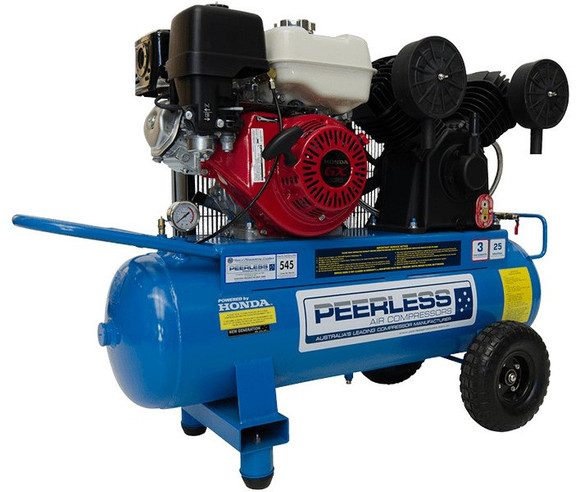 The PV25 is a V cast iron 9HP Honda air compressor. It gives a massive 545 litres of free air. It has a maximum operating pressure of 145PSI and out performs equivalent models on the market from 50 - 110 litres of free air. This model is one of the most popular petrol models on the market and is ideal for a 2-3 man workshop. Please refer to our flow chart when selecting a compressor that is right for you. Electric start optional extra. Please call us for a quote.