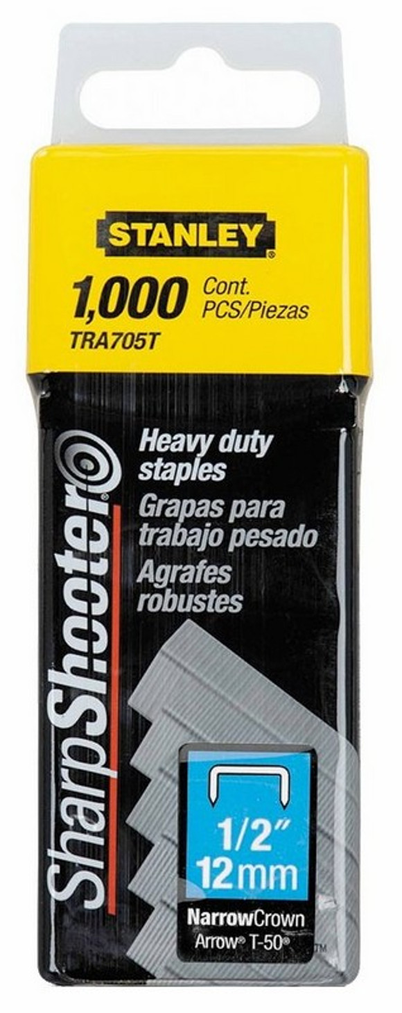 This 1000-pack of 12mm heavy-duty narrow crown staples are convenient and reliable. Used for heavy-duty stapling jobs such as insulation carpet underlayment, and roofing felt, these staples come in sturdy plastic packaging to helps reduce breakage of the stick. With color-coded packaging, you can easily choose the correct brads for the project you are working on.