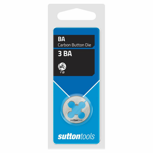 Sutton Tools Button Dies are used for cutting a new male/external thread on studs. Carbon Alloy Steel threading tools are not suitable for precision, safety or critical thread. General purpose / DIY use only. Used with suitable button die holder.