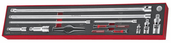 - 6 extn bars: 1/4’’ 3/8”& 1/2” Dr, uni joints: 1/4” & 3/8”& 1/2” Dr